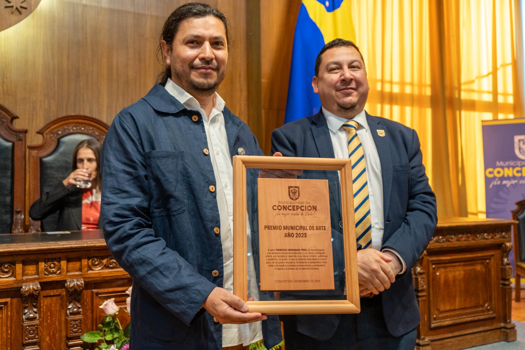 Los académicos de la Facultad de Humanidades y Arte de la Universidad de Concepción, Francisco Huichaqueo Pérez y Dr. Gastón Salamanca Gutiérrez, fueron reconocidos en los Premios Municipales 2025 en las categorías de Arte y Ciencias Sociales, respectivamente.