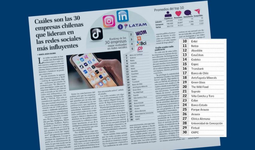 El estudio fue elaborado por ALTA Comunicación y el Ranking de Reputación Digital (ReDi), y publicado el 9 de noviembre en la Sección Economía y Negocios de El Mercurio.