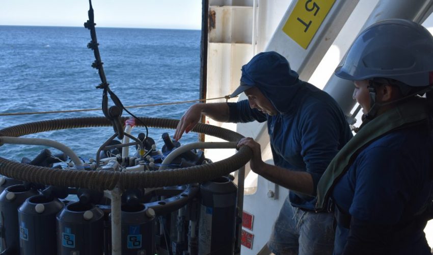 El geofísico UdeC y magíster en Oceanografía, Manuel Torres Godoy, quien también fue parte de la expedición científica, explicó la complejidad de la recuperación: “No es trivial recuperar una línea llena de instrumentos a más de 7 kilómetros de profundidad. Primero, debemos establecer comunicación acústica –afectada por la dispersión del sonido–, luego enviar un comando de liberación que puede o no llegar, y, si todo sale bien, esperar a que los equipos salgan a flote para divisar boyas de menos de un metro entre olas de 2 a 3 metros”.