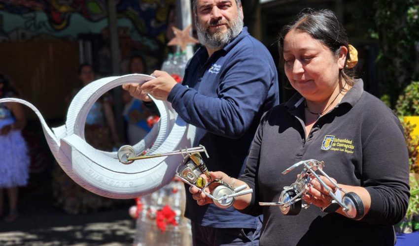 La pérgola del Campus UdeC Los Ángeles se transformó en una pasarela inédita, donde neumáticos, bolsas y botellas plásticas, latas, papel y otros materiales en desuso, cobraron nueva vida para transmitir un mensaje claro: la sustentabilidad también se construye desde lo cotidiano y el trabajo colaborativo.
