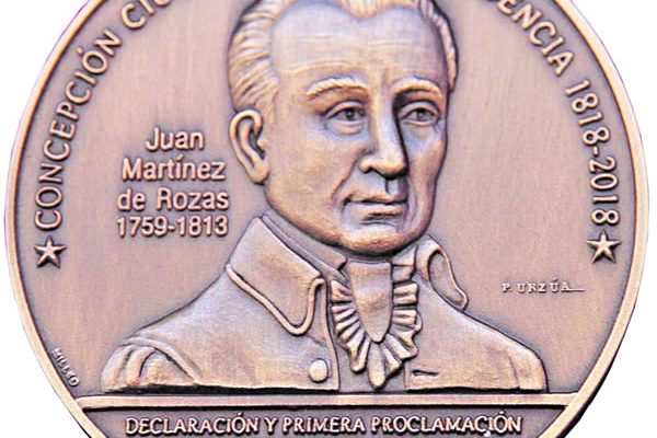 Durante la presentación del libro "El regreso del prócer: Don Juan Martínez de Rozas en la ciudad de Concepción", el rector de la Universidad de Concepción, Sergio Lavanchy Merino, recibió la recién instaurada medalla Juan Martínez de Rozas.
