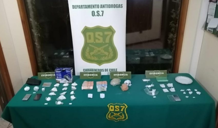 El jefe de la Sección OS7 Capitán, Patricio Opazo, detalló que “fue posible sacar de circulación más de 2.100 dosis de dichas sustancias, avaluadas en $3 millones de pesos”.