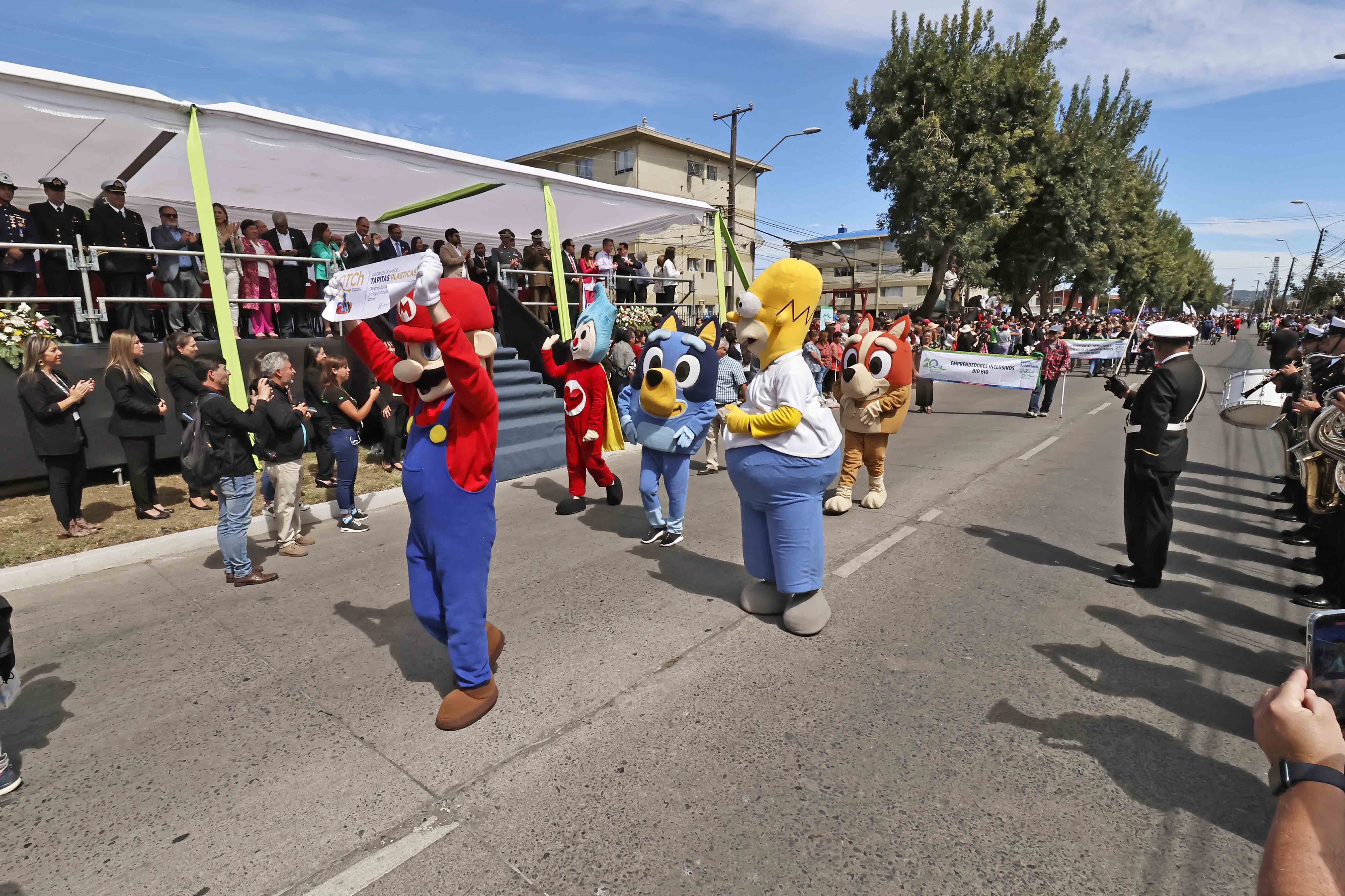 Hasta personajes infantiles pasaron frente al palco de autoridades.