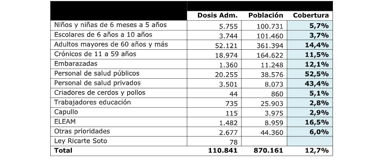 Fue hace 17 días que se realizó el lanzamiento comunal de la Campaña de Vacunación contra la Influenza y el Covid- 19, este martes son más de 110 mil 841 personas de la Región del Biobío, que forman parte del público objetivo definido por el Ministerio de Salud en razón de sus condiciones biomédicas, han accedido gratis a la vacuna.