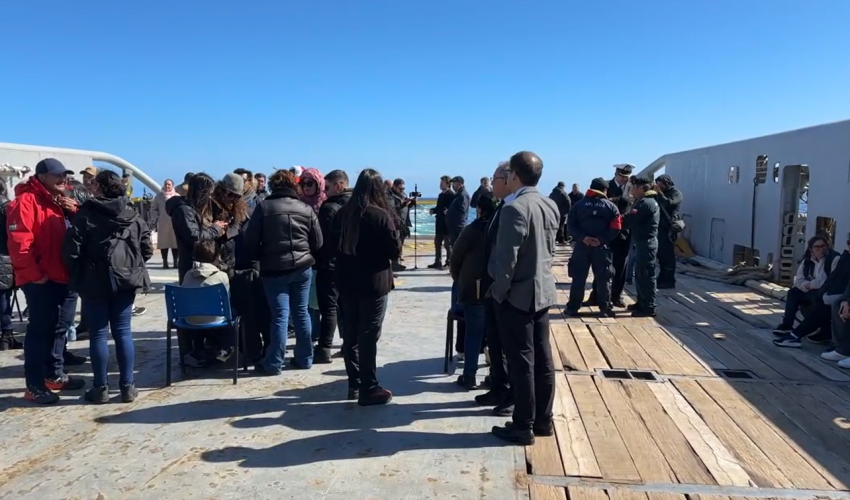 Así se vive la emotiva ceremonia de despedida de los siete pescadores de la lancha “Bruma” que naufragaron en las costas de Coronel. Familiares de los tripulantes desaparecidos llegaron desde Constitución a la Región del Biobío.
