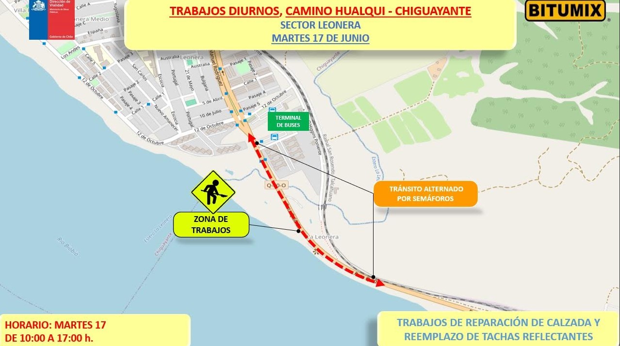 Por reparación de calzada, la seremi de Transportes informó el inicio del tránsito alternado en camino a Hualqui, en Chiguayante, particularmente en el sector Leonera.