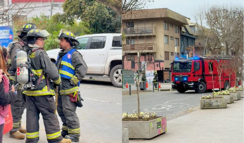 Bomberos de Concepción trabaja en un operativo por escape de gas en un edificio de la Diagonal Pedro Aguirre Cerda, en pleno centro de la capital regional.