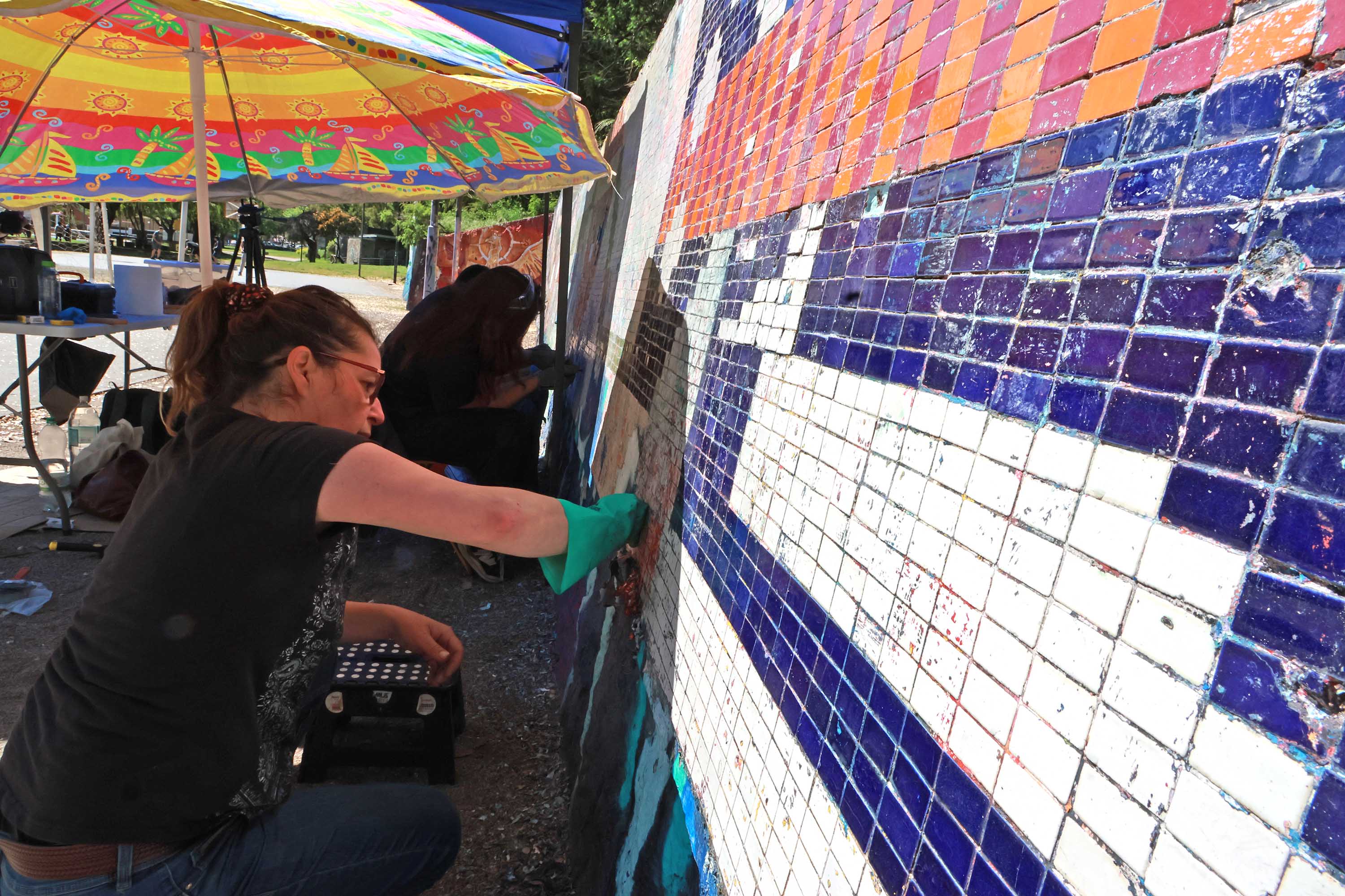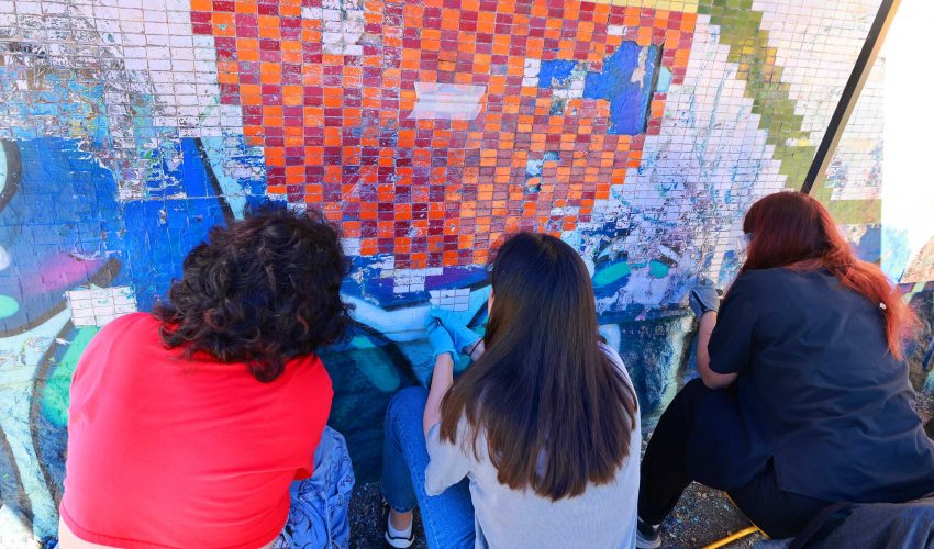 La idea por parte de “Teselapedia”, grupo dedicado al archivo visual de mosaico vítreo y cerámico, es volver a dejar a la vista de todos un mural que data de la década del 80 y que hoy vive bajo varias capas de pintura ajena.
