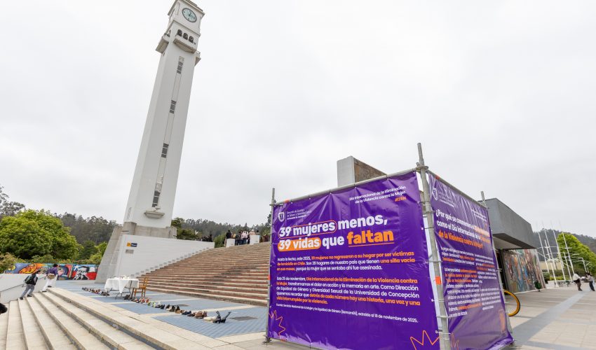 La Universidad de Concepción (UdeC) realizó este martes una intervención artística en el contexto del Día Internacional de la Eliminación de la Violencia contra la Mujer, hito que se conmemora anualmente cada 25 de noviembre para reflexionar sobre la violencia hacia las mujeres a nivel mundial. En esta oportunidad, la actividad tuvo como propósito honrar la memoria de las víctimas de femicidio en Chile y darle visibilidad a la gravedad de estos hechos.