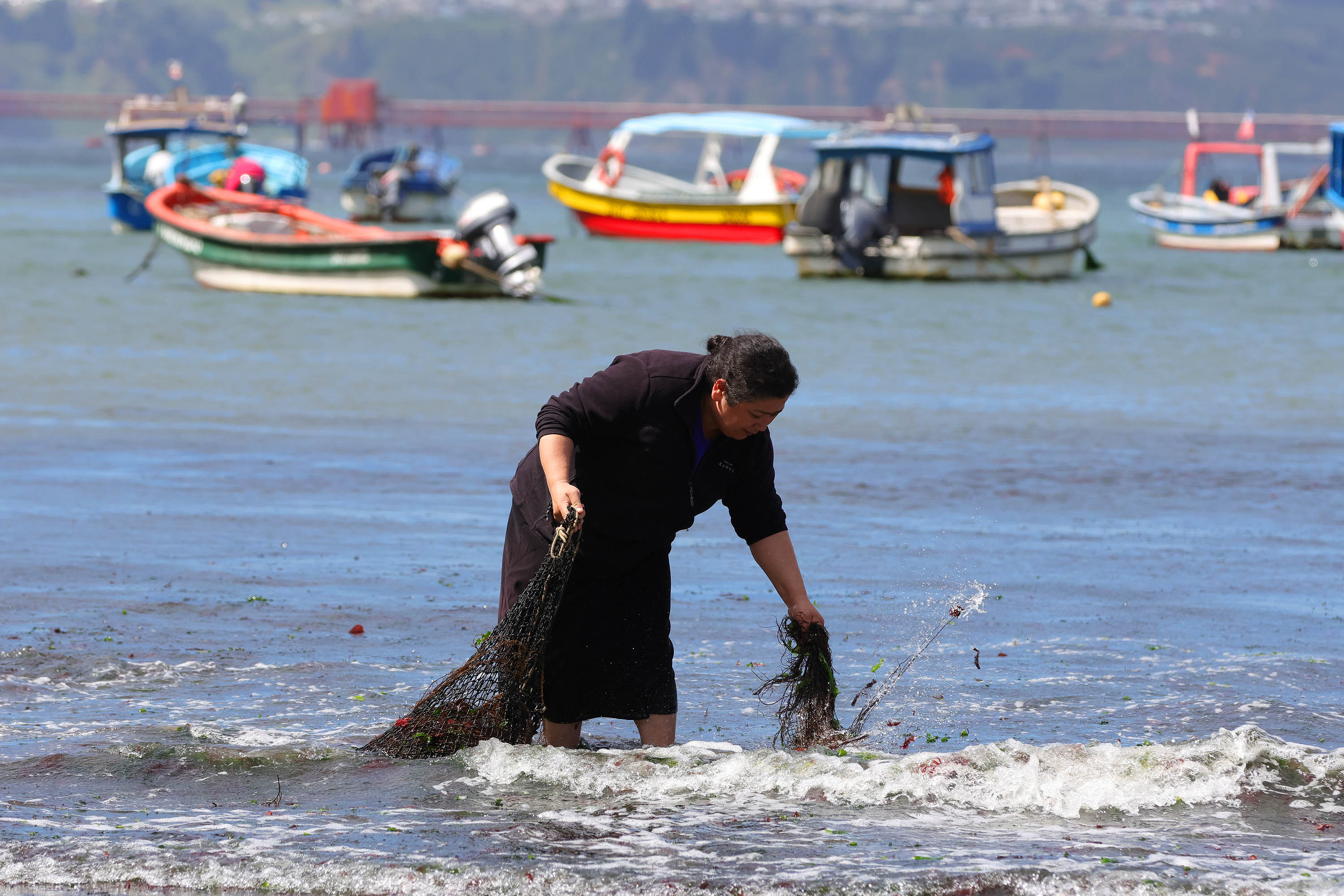 En cuanto a la rutina para recolectar el pelillo, Gladys comentó que a veces se levantaban a las 6 horas para entrar al mar. “Ahí veíamos cuando venía la baja, y en ese momento ingresábamos al mar con un quiñe, como le llamamos nosotros a una malla. Nos lo cargábamos al hombro y lo sacábamos, o lo sacábamos como abrazado. Después salíamos, siempre haciendo mucha fuerza, porque es pesado. Además, con la ropa abrigada que al mojarse pesa”, describió.