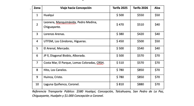 A través de un comunicado de prensa desde EFE Sur informaron que a partir de este viernes 2 de enero de 2026, el servicio Biotren Línea 1 y Línea 2 experimentará un reajuste en sus tarifas. Detallando que “desde el primer día hábil del nuevo año la matriz tarifaria registrará un ajuste de $60 pesos en promedio, manteniéndose como el medio de transporte público más económico de la Región del Biobío“.