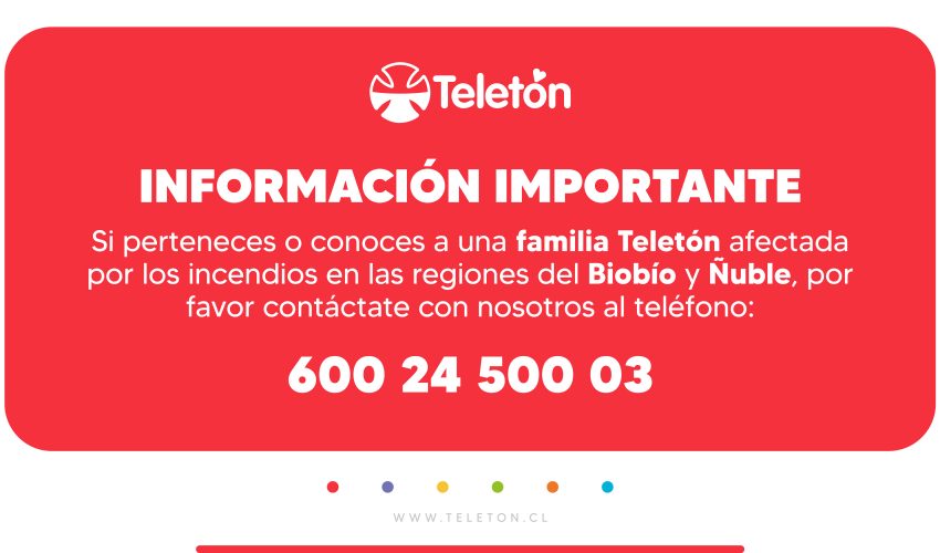 El llamado es “si conoce a una familia Teletón afectada en Biobío o en Ñuble, la institución solicita compartir esta información para facilitar un contacto oportuno”.