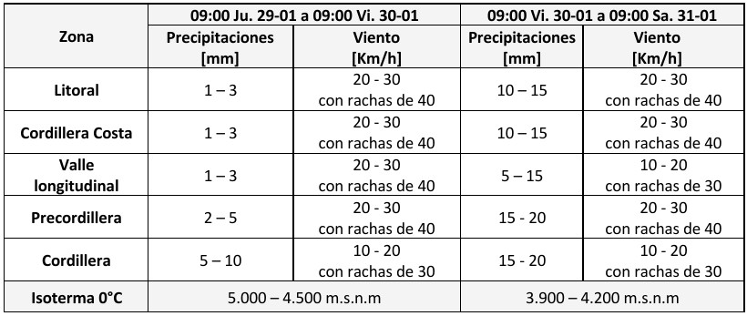 Según el reporte, las lluvias se concentrarán desde la tarde del viernes 30 de enero hasta la mañana del sábado 31 de enero, período en el que también se prevén rachas de viento de hasta 40 km/h y precipitaciones que podrían alcanzar los 20 milímetros, dependiendo del sector.