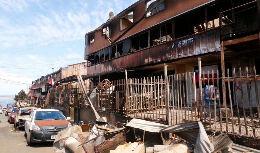 “Si alguien viene a Ríos de Chile, ve cómo que se paró el reloj, no hemos avanzado. Da tristeza porque los otros sectores probablemente ya están con avances de construcción”, definió Alexandra Acuña, presidenta de la Junta de Vecinos de Ríos de Chile, donde hubo 720 departamentos destruidos por el fuego.