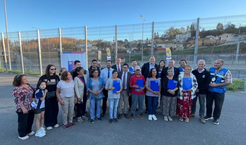 En la multicancha del sector El Pino de Concepción se llevó a cabo la entrega de copias de escrituras de dominio a 10 familias del sector El Pino, en la comuna de Concepción. El hito contó con la participación del Ministro de Vivienda y Urbanismo, Iván Poduje, el Delegado Presidencial Regional, Julio Anativia Zamora; el Director General de la CAJ Biobío, Mauricio Decap Fernández, el alcalde de Concepción Héctor Muñoz y representantes del Gobierno Regional, quienes acompañaron a los vecinos en este paso hacia la normalización de sus vidas.