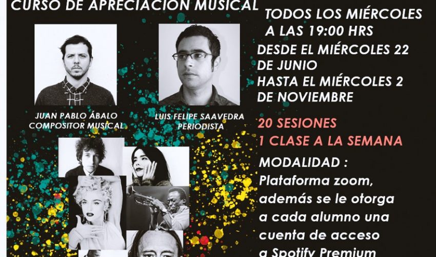 Este taller estará a cargo de dos destacados académicos, compositores e investigadores nacionales. Se trata de Juan Pablo Abalo quien es compositor, productor y arreglista. Licenciado en Composición, magíster en artes y doctor en estética. Académico de la Facultad de Artes Liberales y director del diplomado en Apreciación Musical de la Universidad Adolfo Ibáñez. Ha compuesto música para orquestas y ensambles. Como solista ha publicado cinco discos y con el dúo Los Días Contados editó dos producciones. Fue columnista musical para The Clinic y revista Cosas.