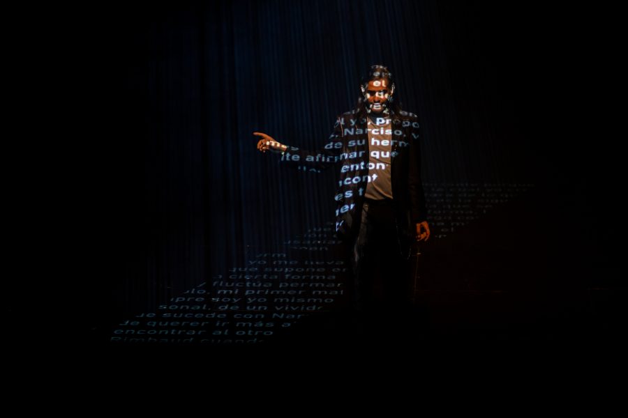 A través de una puesta en escena que pone énfasis en medios sonoros y audiovisuales, el personaje invita al espectador a recorrer un trayecto fascinante y arriesgado que de a poco nos va adentrando en el laberinto confuso del yo, del lenguaje y del tiempo, a la vez que irá abordando tema como la creación, la soledad, el deseo, la belleza y la muerte.
