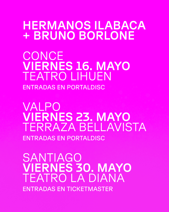 Tras Concepción, cuyas entradas aún se encuentran disponibles a través de PortalDisc, el dúo llevará “HI Remixes” el 23 de mayo a Terraza Bellavista, y posteriormente, el 30 de mayo, lo presentará en Teatro La Diana. “Tenemos diferentes shows agendados para la segunda parte del año, ya sea en este formato como de banda completa. Creemos que es interesante ir entregándole cosas nuevas al público, vivimos una época propicia para ello, el no parar de crear”, afirmó el también compositor.