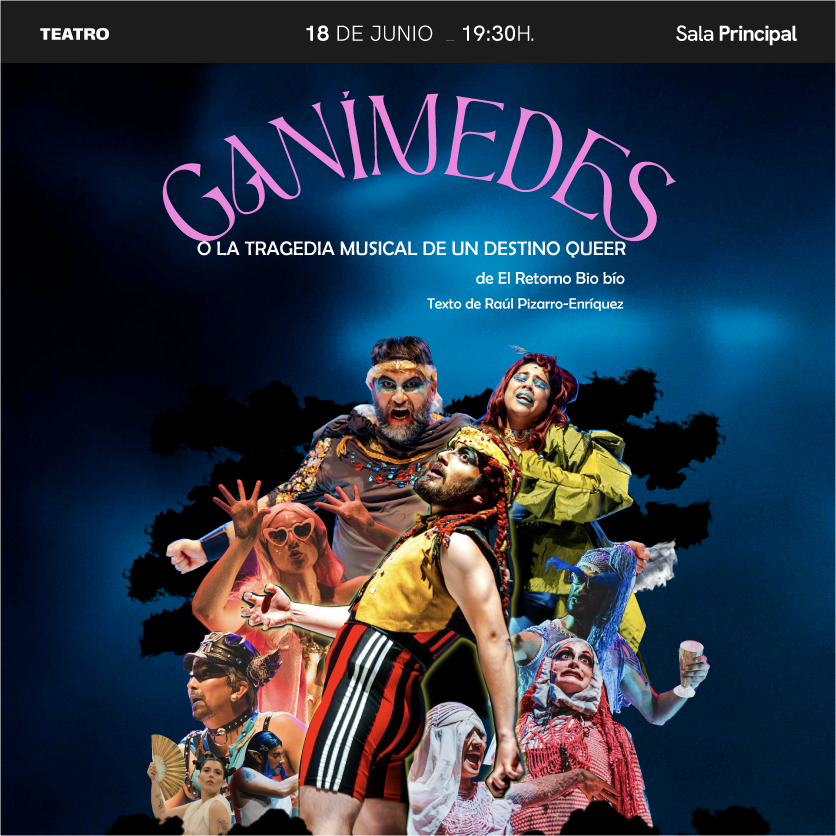 Estrenada en noviembre del 2023, “Ganímedes o la tragedia musical de un destino queer” es una obra de teatro musical, escrita y dirigida por el actor Raúl Pizarro-Enríquez, quien terminó el texto gracias a la adjudicación de un Fondart de Dramaturgia. Tras ello, el montaje se materializó a través del aporte de privados y la autogestión del elenco de 13 actores, actrices y músicos de la compañía El Retorno Biobío, la cual el da vida a la historia.