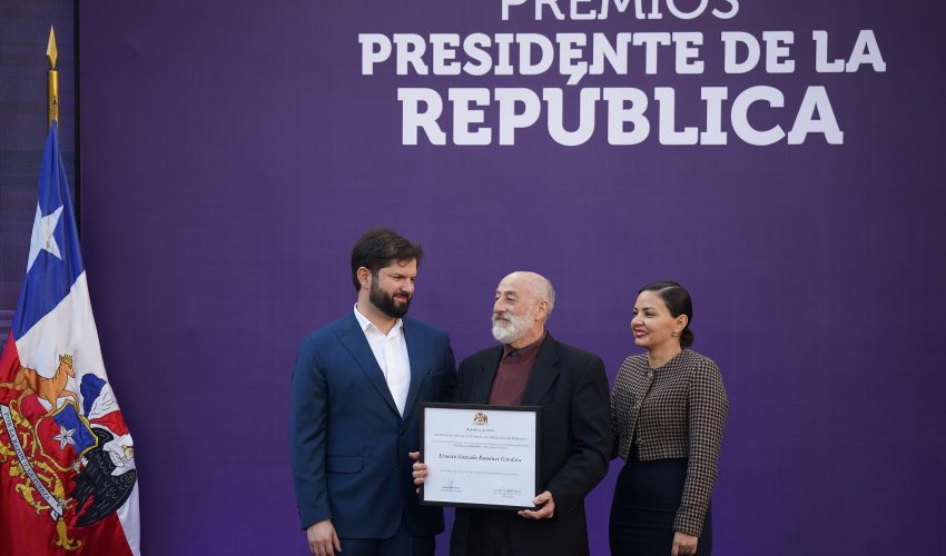 El Premio Presidente de la República a las Artes Escénicas 2024 lo cataloga como uno de los artistas más influyentes de la escena de títeres del país, y fue entregado por el Presidente Gabriel Boric y la ministra de las Culturas, las Artes y el Patrimonio, Carolina Arredondo.