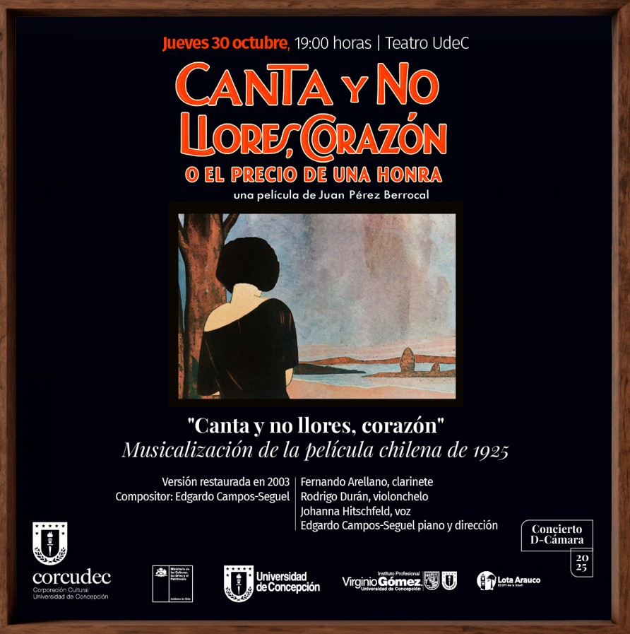 La Corporación Cultural Universidad de Concepción (Corcudec) presenta una experiencia única que une cine y música en vivo con la proyección del largometraje “Canta y no llores, corazón (o El precio de una honra)”, película de ficción de 1925, sin diálogos y en blanco y negro.