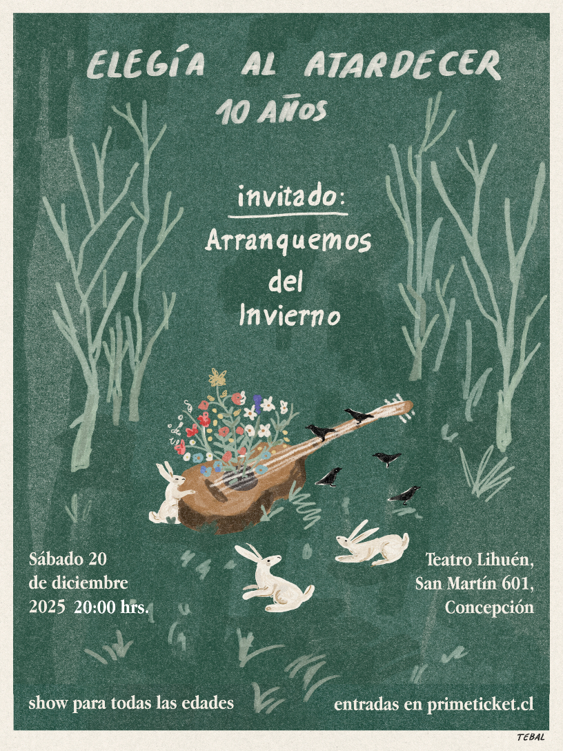 Como invitado especial se presentará Arranquemos del Invierno, proyecto del músico Pablo Álvarez, reconocido por su delicadeza compositiva y la profundidad emocional de su propuesta, que dialoga naturalmente con el universo sonoro de Elegía al Atardecer.