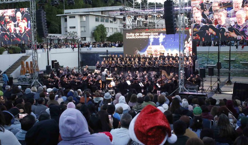 Tras la reprogramación forzada por las condiciones climáticas adversas de la jornada sabatina, el tradicional concierto de Navidad del Coro y Orquesta UdeC -bautizado como “Sinfonía de Navidad”– vivió este lunes su emotiva y mágica presentación, con una asistencia que superó las 10 mil personas en el Foro y los pastos de la UdeC. Así ante un imponente marco de público, la agrupación clásica y coral penquista desplegó un repertorio ameno y diverso colmado de las melodías distintivas de esta época festiva. En detalle, el programa incluyó obras de Leroy Anderson, suite navideña con villancicos tradicionales europeos, “El Vals de las Flores” del Cascanueces de Tchaikovsky, el cuarto movimiento de la Suite N°2 La “Farandola” de George Bizet, entre otras.