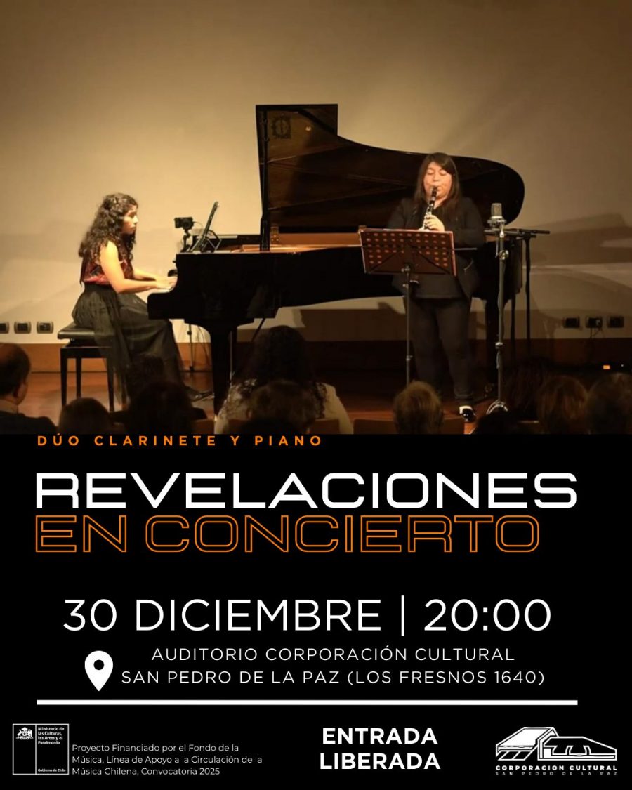 Como una manera despedir el 2025 en comunidad y al son de música en vivo de gran nivel, la Corporación Cultural San Pedro de la Paz presentará el concierto “Donde el tiempo respira”, a cargo del Dúo Revelaciones, integrado por la pianista Daniela Saavedra y la clarinetista Karla Rodríguez. La actividad es gratuita y abierta a toda la comunidad.