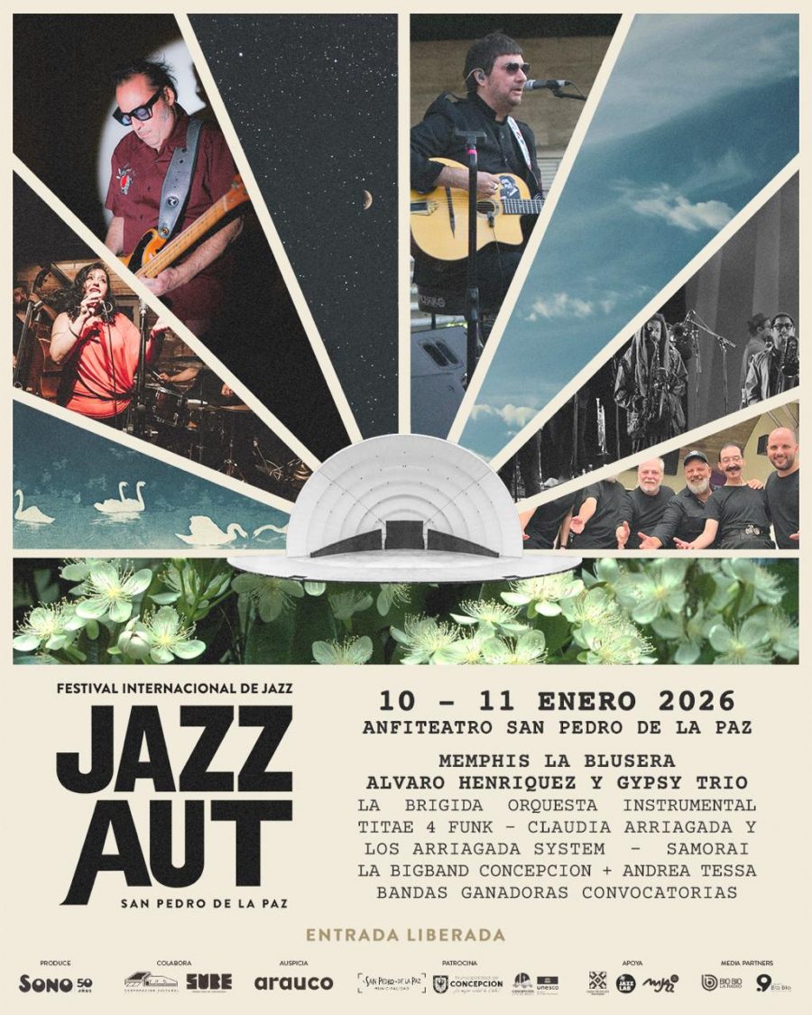 17.00 Horas. Festival Jazz Aut. Primera jornada de este destacado retorno de la cita sincopada local, en la que participarán Big Bnad Concepción, Andrea Tessa, Claudia Arriagada y Los Arriagada System, Samorai, María y los Templos, y Álvaro Henríquez Gypsy Trío. Anfiteatro de San Pedro de la Paz. Entrada liberada previa descarga de tickets.