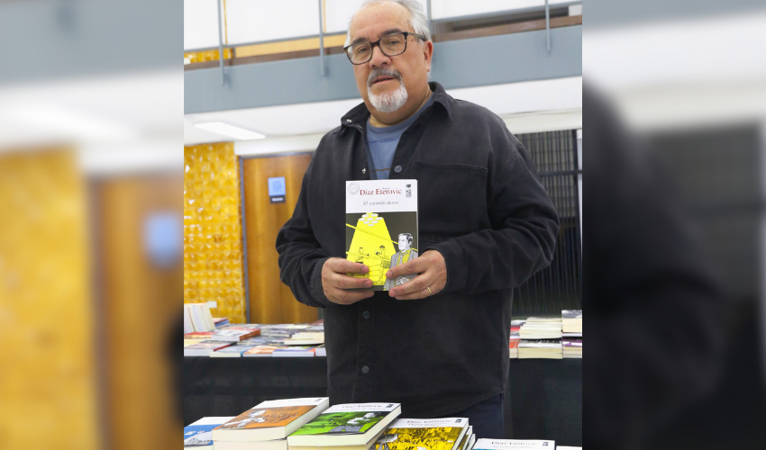 El reconocido escritor, ganador del Premio Nacional de Literatura 2025, fue el invitado de honor a la celebración en Concepción -realizada estos días en el hall de la Biblioteca Central UdeC- de los 35 años de LOM Ediciones, casa editorial que ha acogido su creación literaria y su personaje detective Heredia.