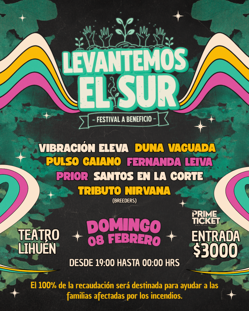 Este domingo 08 de febrero, el Teatro Lihuén será el punto de encuentro entre la música y la solidaridad con la realización del Festival Levantemos el Sur, un evento a beneficio de las familias afectadas por los incendios forestales que han golpeado a la Región del Biobío.