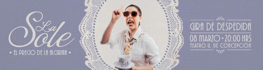 Paloma Larraín y su personaje La Sole llegan este 8 de marzo -Día Internacional de la Mujer- al escenario del Teatro UdeC para realizar el último show de la obra “El precio de la alcurnia”, espectáculo que ya ha pasado por diversas regiones del país. “Esta fecha se movió y quedó como el gran cierre de esta obra. Me despido de este texto, ya que llevo varios años girando con este espectáculo, y que mejor manera de hacerlo en mi ciudad natal y en un día tan simbólico como el 8M”, afirmó la actriz en conversación con Diario Concepción.