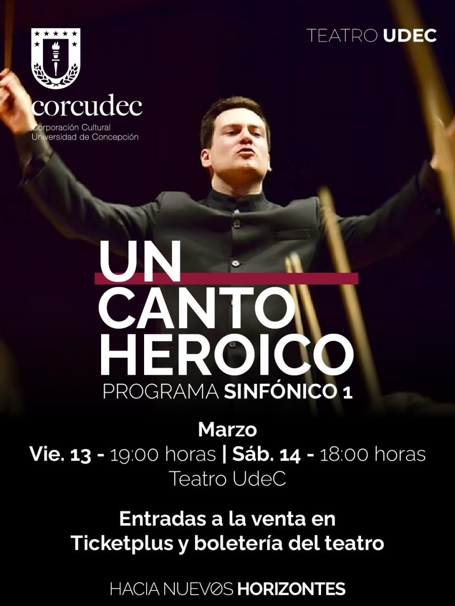 19.00 Horas. Sinfónico 1 de la Orquesta Sinfónica UdeC. Primer programa de la temporada 2026 que incluirá obras de Tchaikovsky y Beethoven. Dirige Iván López-Reynoso (México) con la violinista solista invitada Ellinor D´Melon (Jamaica). Entradas disponibles a través del sistema Ticketplus.cl.