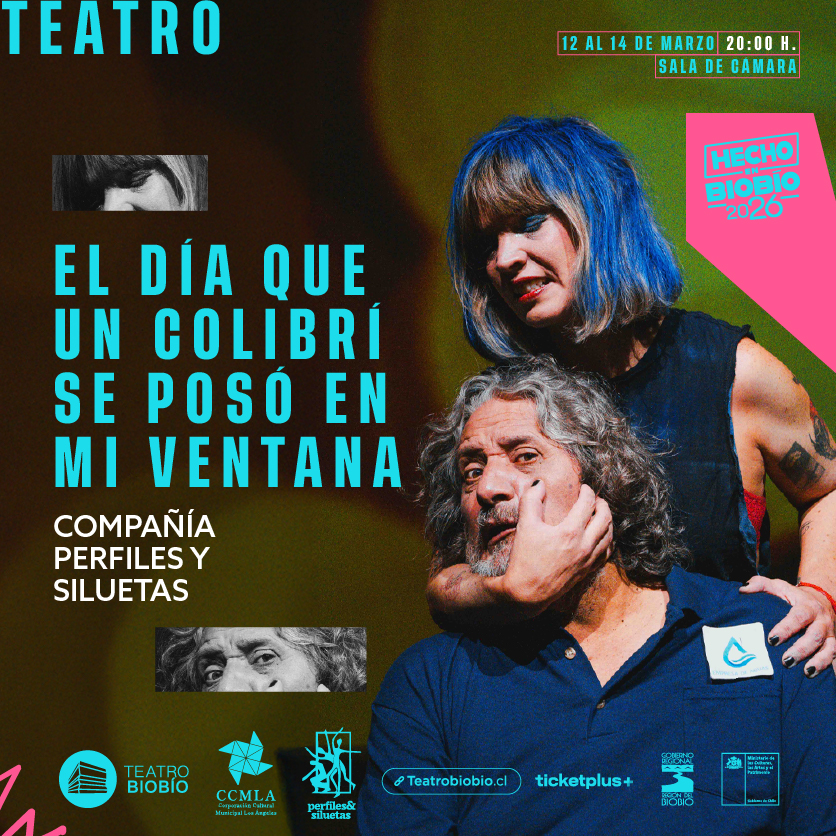 20.00 Horas. Función de la obra “El día que un colibrí se posó en mi ventana”, de la compañía Perfiles y Siluetas. El montaje es una tragedia que explora la intimidad de una pareja que se desarma precisamente por no tener las conversaciones necesarias sobre la intimidad, postergando los profundos deseos de cada ser y empujándolos hacia diferentes márgenes. Sala de cámara del Teatro Biobío. Entradas vía Ticketplus.