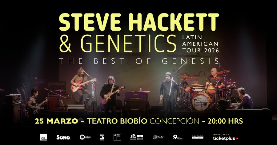 20.00 Horas. El legendario guitarrista y miembro fundador de Genesis, Steve Hackett, visitará Concepción junto a la banda Genetics como parte de su “The Best of Genesis – Latin American Tour 2026”. El espectáculo revive los grandes clásicos de Genesis con el virtuosismo de Hackett y toda la potencia en vivo de Genetics. Sala principal del Teatro Biobío. Entradas vía Ticketplus.