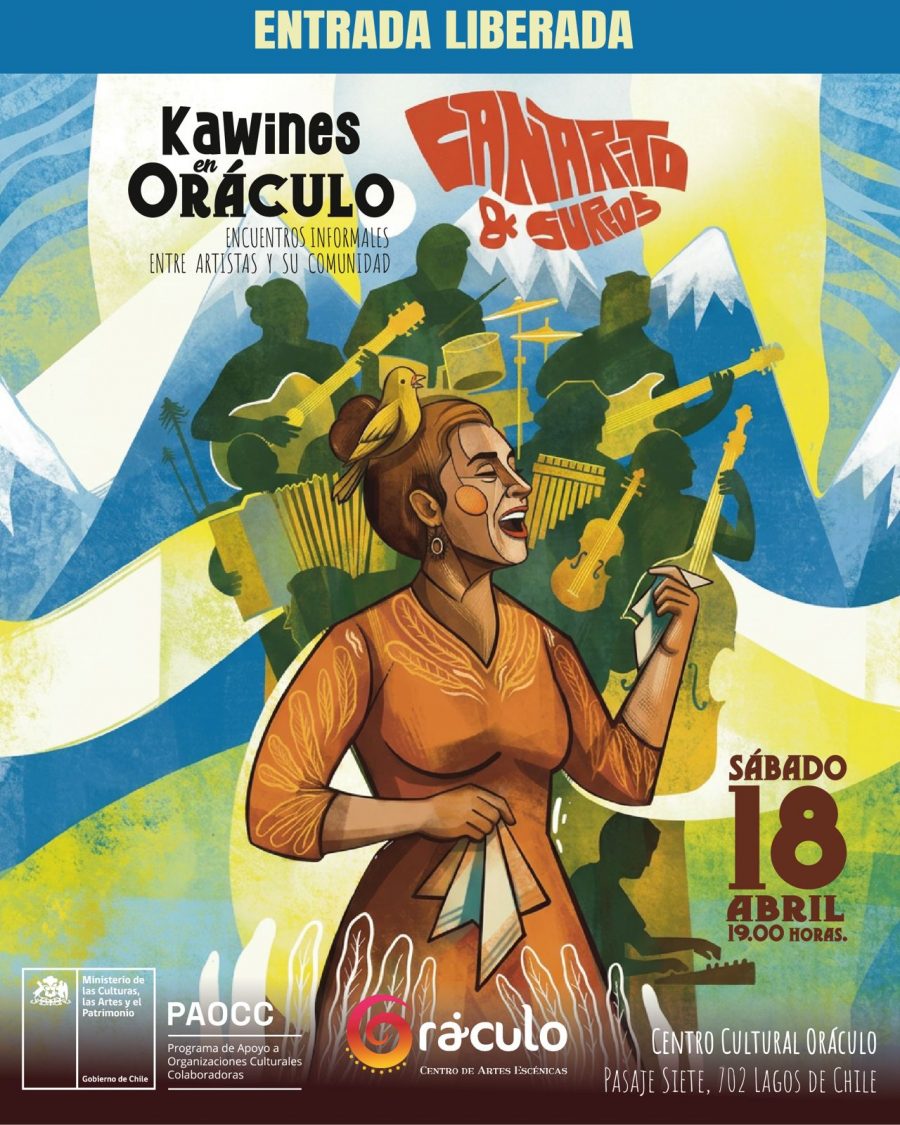 19.00 Horas. Kawines en Oráculo, encuentros informales entre artistas y su comunidad. Primera sesión que tendrá como invitada especial a Canarito & Surcos. Proyecto musical penquista que se inscribe en la raíz del folclor latinoamericano, construyendo una propuesta escénica donde la música se vuelve relato, memoria y experiencia emocional. Centro Cultural Oráculo (Pasaje Siete, 702 Lagos de Chile). Entrada liberada.