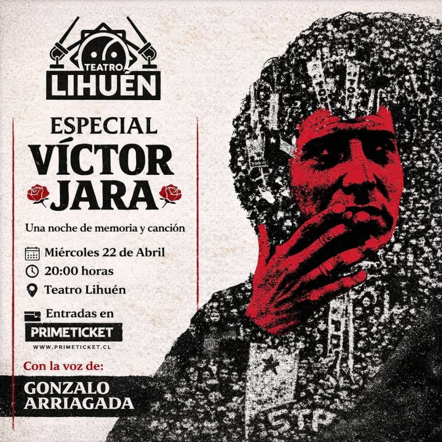 20.00 Horas. Especial Víctor Jara, una noche de memoria y canción. Un recorrido por sus canciones más emblemáticas, interpretadas por Gonzalo Arriagada, que han marcado generaciones y siguen vigentes en el corazón del pueblo. Teatro Lihuén (San Martín 601). Entradas en Primeticket.