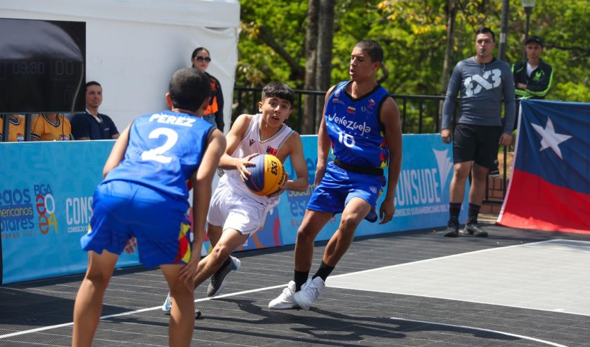 La representación nacional, integrada por Martín Santander, Agustín Santander y Alonso Tapia, estudiantes del Liceo la Asunción de Talcahuano, además de Diego Espinoza (The Sower School de Yumbel) superaron 18-15 a Venezuela en el debut del equipo nacional en el certamen que este año, por primera vez, integra al básquetbol 3×3 en la competencia.