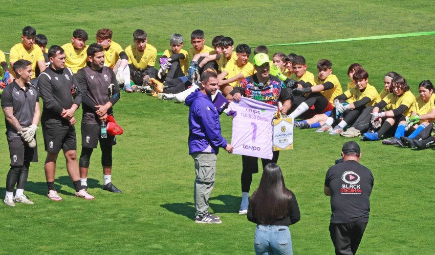 Como anfitrión estaba el alcalde de Concepción, Héctor Muñoz, y, tras su presentación, el guardameta recibió camisetas por parte de Fernando Lazcano, de Deportes Concepción, y Camila Sánchez, de la UdeC. La “hinchada”, con alta presencia de niños, aplaudía cada intervención.