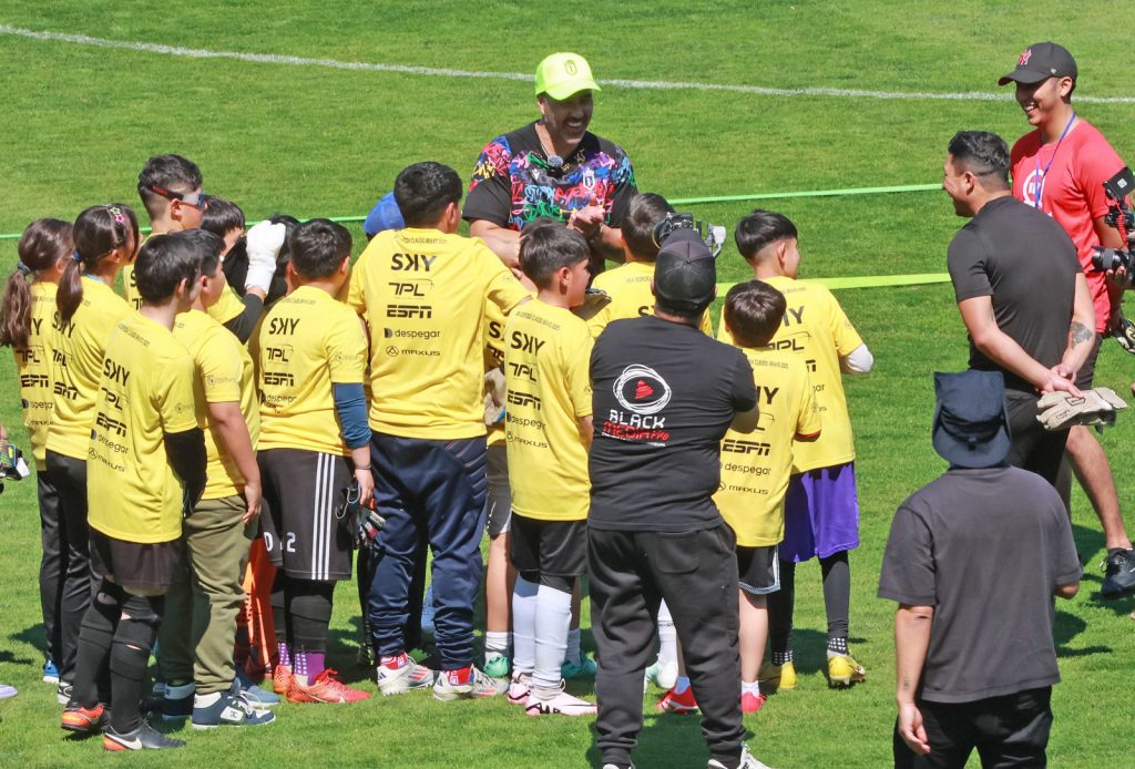 Ingresó a las 15 horas en punto, con llamativo jockey verde, levantó las manos para recibir el último aplauso en la cancha Concepción y pasó saludando uno por uno a los niños, todos sentados en el campo de juego. El terreno estaba dividido en varias estaciones, donde más tarde arrancó la clínica del gran capitán de la “Roja”.