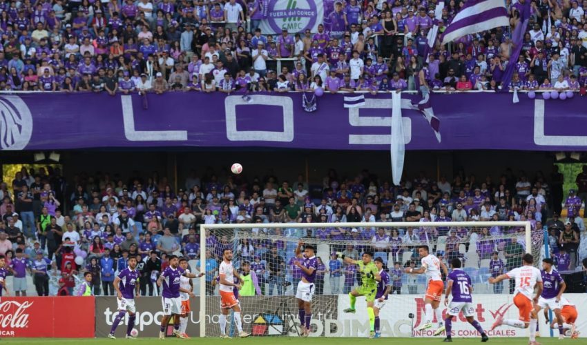 Pitazo inicial y los morados otra vez de cabeza sobre el arco rival, pero había que concretar al menos una. Como viene siendo costumbre, la balanza del ataque penquista se inclinó por el lado de Carlos Morales, que nunca se cansa de encarar, cambia de lado y a los 52″ metió un centro rasante atrás que terminó en el gol de Cáceres.