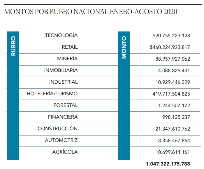 En cuanto a los rubros que exhiben las mayores cifras en el ámbito regional, se pueden mencionar la industria (maderera), forestal, hotelería y turismo, construcción y retail.