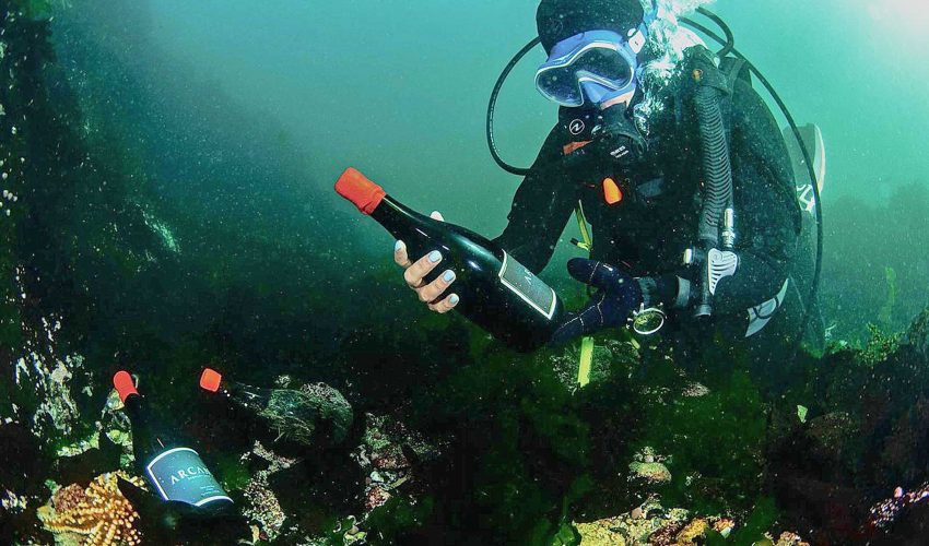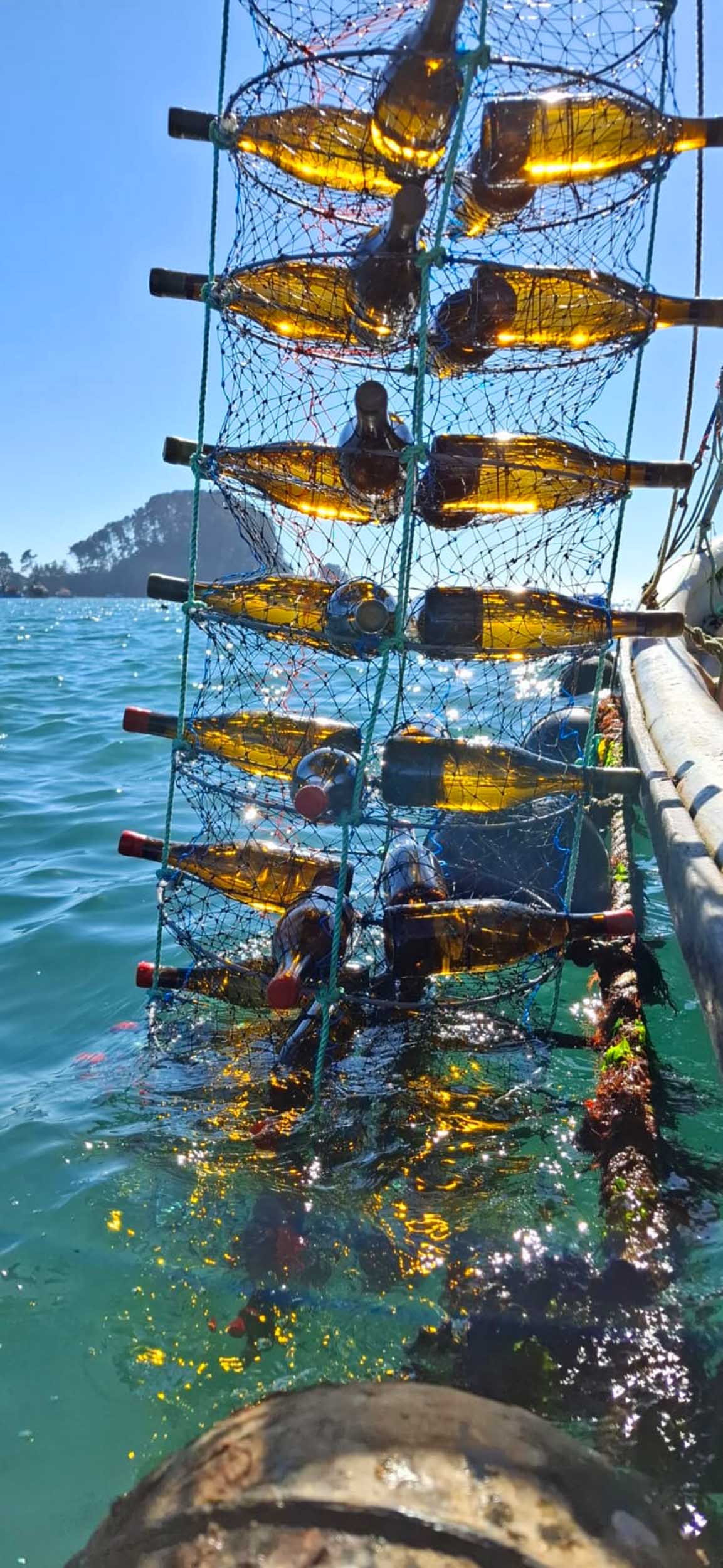 Viticultores y acuicultores unen saberes en una apuesta inédita que tiene al océano como punto de cultivo de los brebajes.