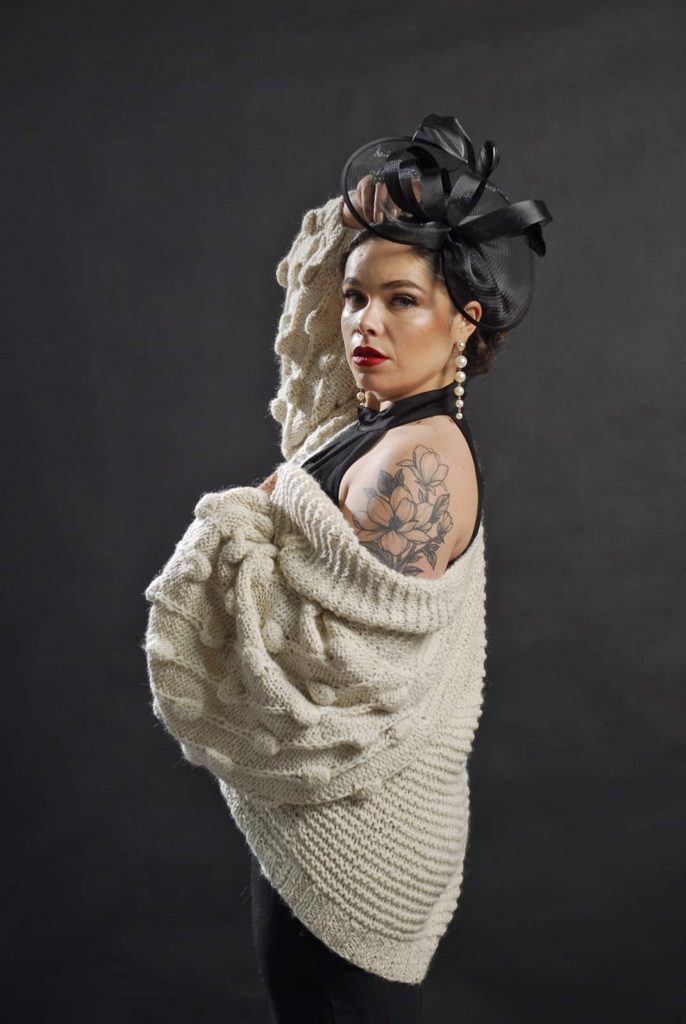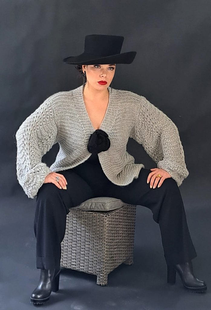 -Se trata de una fibra natural que se usa como parte de diseños de autor. Por ser lana, muchos piensan que es algo rústico, pero no es así. Es un producto fino muy bien hecho y muy bien terminado que yo diseño y que son para mujeres que trabajan, que les gusta ser elegante y que buscan algo distinto ya que todos mis modelos son únicos y diferentes con una manga muy ancha.