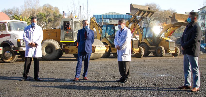 Autoridades del Servicio de Salud Concepción y la UdeC dieron inicio a las obras del Hospital Modular que se emplazará en terrenos cedidos en comodato por la Universidad de Concepción y cuyo objetivo es descongestionar el Hospital Guillermo Grant Benavente (HGGB), durante la pandemia sanitaria provocada por el Covid 19.