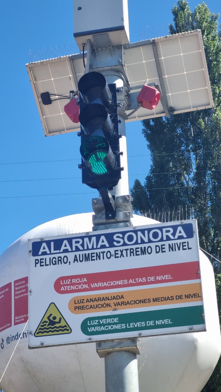 Agregó que “Por ejemplo en la Costanera de Santa Bárbara, existe un sistema de información con un semáforo que puede advertir 15 minutos antes de alguna variación de caudal de acuerdo a su color: verde (10 a 15 centímetros de aumento), amarillo (hasta 30 centímetros de aumento) y rojo (sobre 50 centímetros de aumento). Por eso, cuando uno nada, pesca o hace deportes como Kayak, debe estar atento”.
