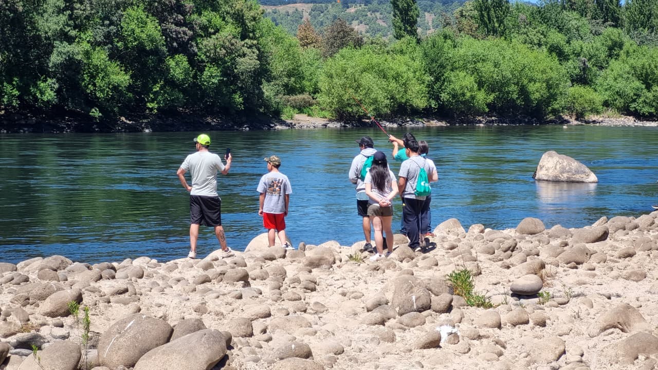 Solo caras felices y muy atentas se vieron entre las familias que llegaron hasta la Costanera de Santa Bárbara para participar de los talleres de kayak y pesca deportiva organizados por la municipalidad local y Colbún.