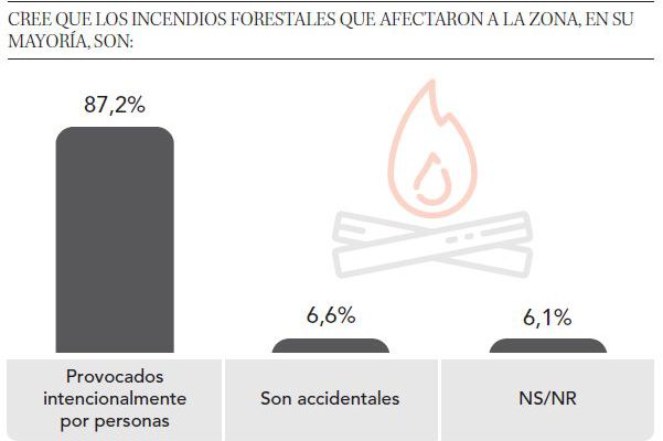Sobre el particular, el 63,3% de las personas cree que la Región "está mal preparada para enfrentar este tipo de emergencias" y el 87,2% opina que los focos de incendios fueron "provocados intencionalmente por personas".