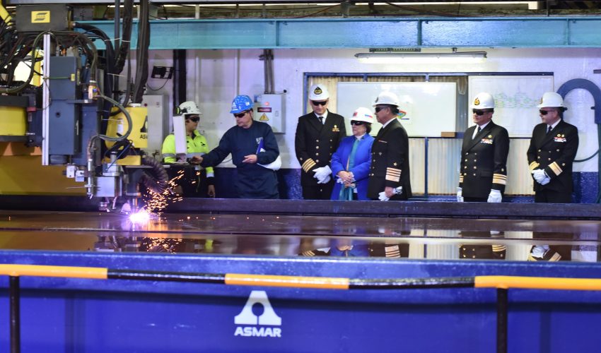 En el marco del Plan Nacional Continuo de Construcción y específicamente dentro del Proyecto Escotillón IV, que contempla la construcción de una serie de embarcaciones multipropósito, se llevó a cabo este viernes el corte de plancha del segundo de los cuatro buques, en las instalaciones de Asmar-Talcahuano.