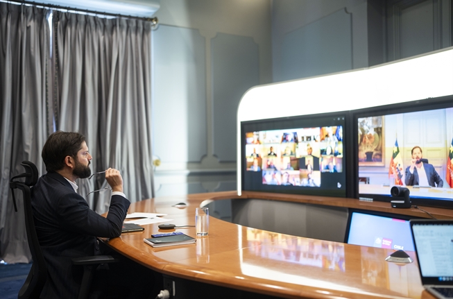 A semanas del cambio de mando del 11 de marzo y con énfasis en delinear las últimas gestiones de su periodo, el Presidente Gabriel Boric sostuvo una reunión telemática desde su despacho en el Palacio de La Moneda con las 16 delegadas y delegados presidenciales regionales del país. En la instancia participaron también el ministro del Interior, Álvaro Elizalde, y la subsecretaria de Desarrollo Regional, Francisca Perales.